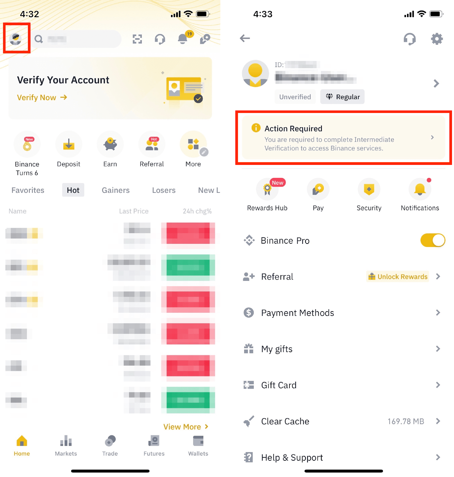 1. 登录个人币安账户,然后点击 App 首页中的【立即认证】。