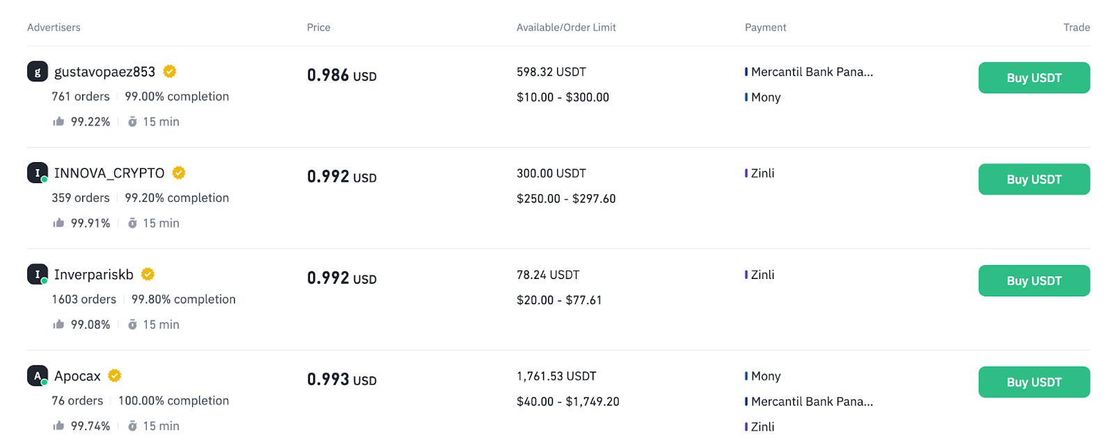 3. 浏览可交易的卖家列表,检查他们的费率和条款。